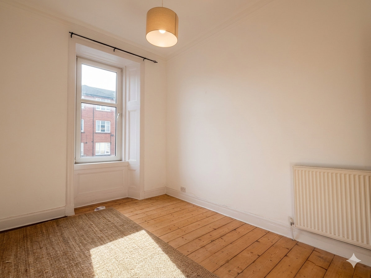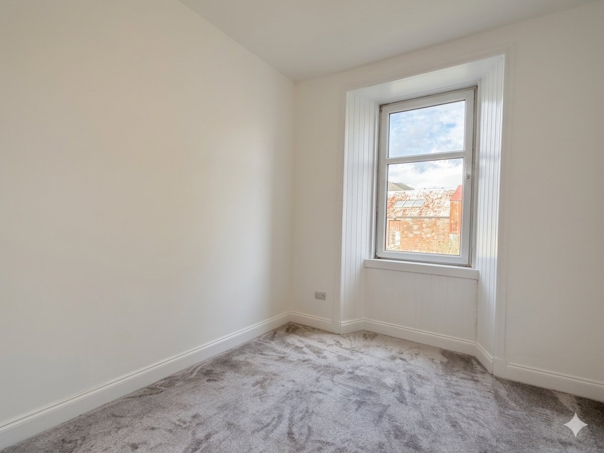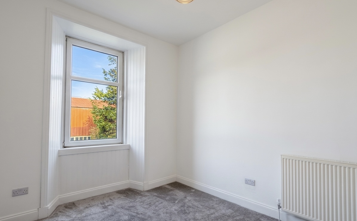 Also located at the front is a generously sized bedroom with a large window and freshly painted walls.