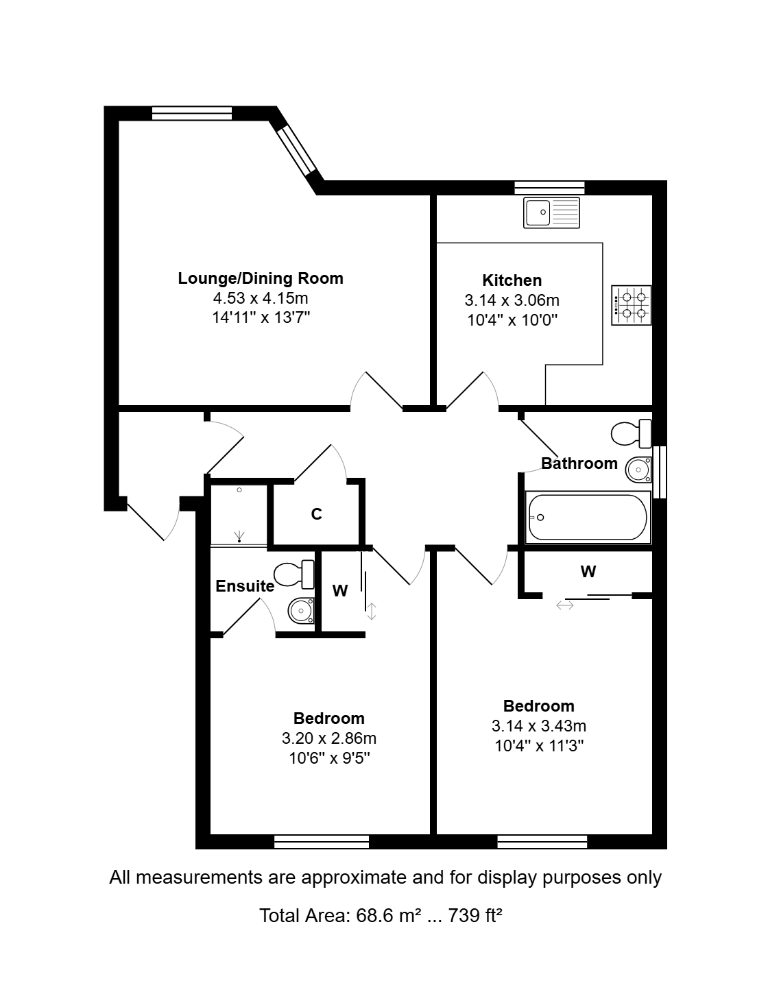 - 2 double bedrooms (master en suite)