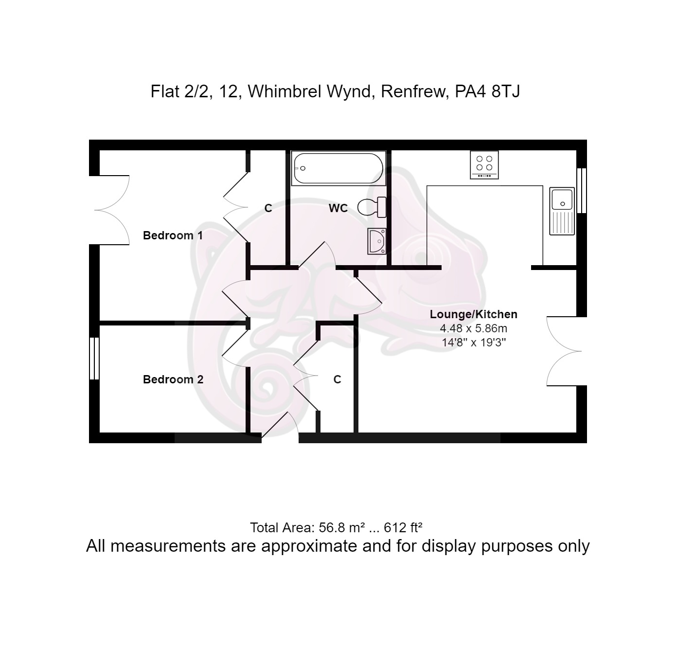 A fantastic two bedroom apartment within the popular Ferry Village development. Whimbrel Wynd is well placed for many amenities including local shops and Braehead Shopping Centre and is within easy access of the M8 motorway and the Queen Elizabeth Hospital. Accommodation comprises of reception hallway, open plan living/dining area modern kitchen boasting newly fitted flooring and patio doors with outlook, double bedroom, a further double bedroom with fitted wardrobes and patio doors and a contemporary fitted bathroom suite.