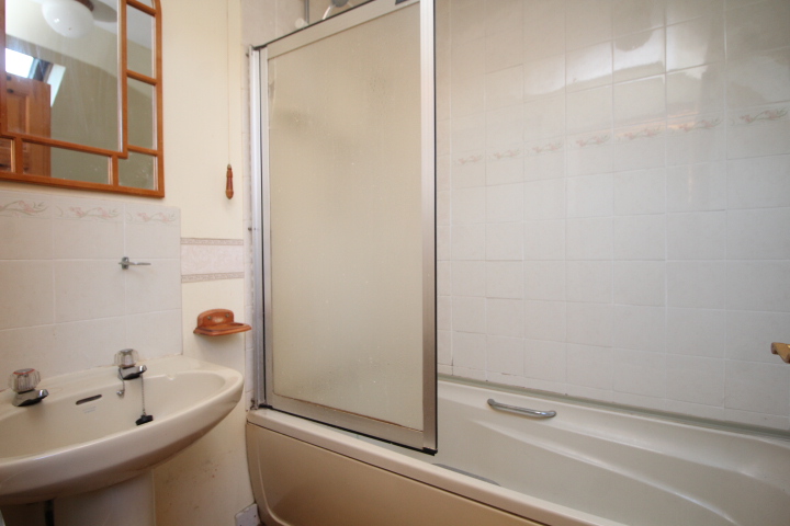 The bathroom is older style and has a three piece suite comprising panel bath wash and basin and a WC.