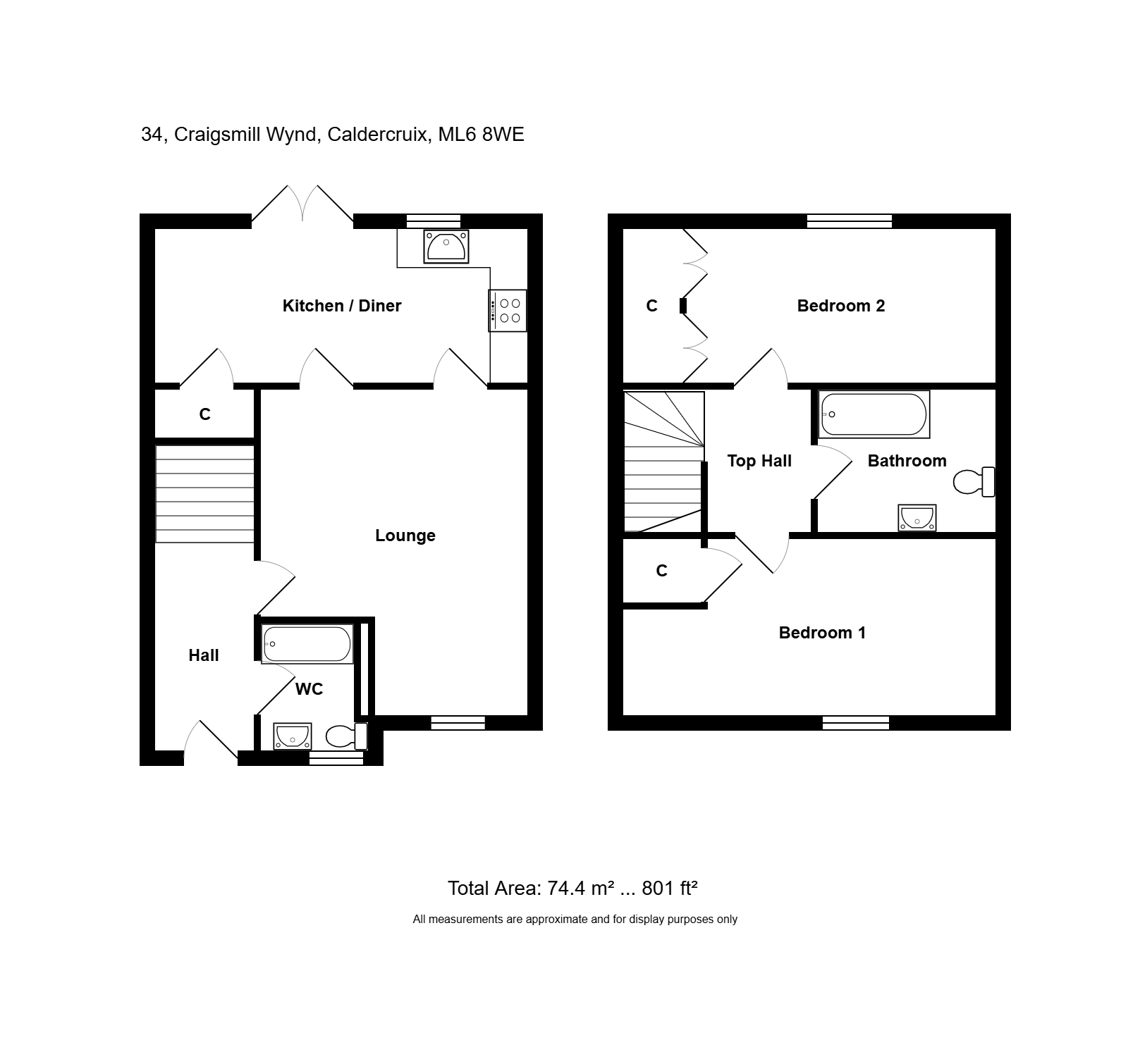 Presenting to the market a spacious mid terrace property within the village of Caldercruix. The accommodation on offer comprises Hallway, Downstairs WC, Lounge, Dining Kitchen, Two