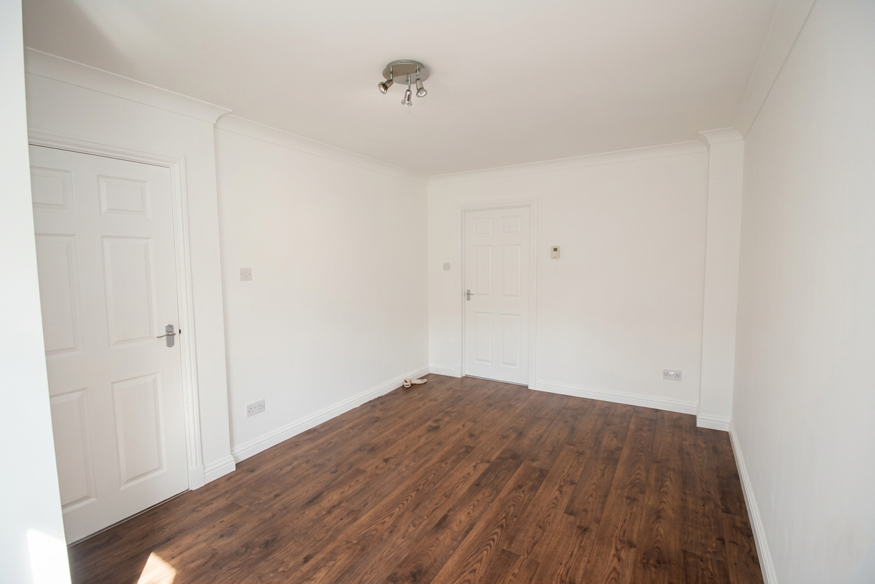 A Spacious Lounge with Laminate Flooring and fresh decor.