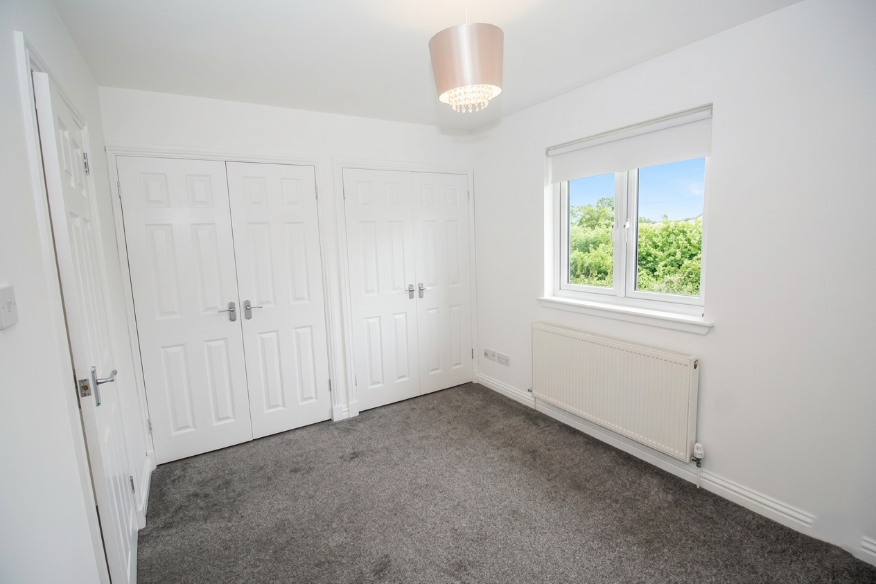 A second spacious double bedroom completed Fresh Decor, Carpeted Flooring and Two Double Built in Wardrobes.