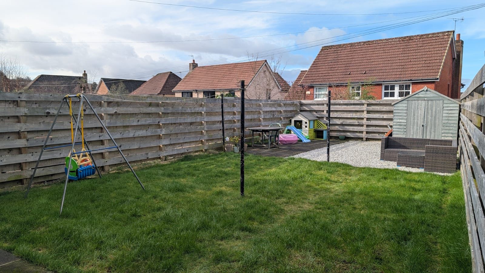 To the front of the home is a low maintenance chipped area. The rear garden is generously sized and enclosed by substantial timber fencing for additional privicy and security. The garden offers a patio areas, lawn and large garden shed.