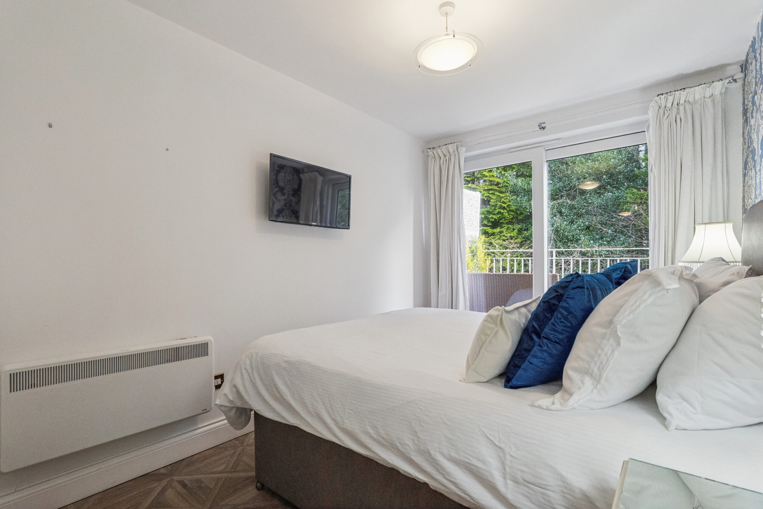 This particular building is in a very private setting and has lovely open views to the front as well as two private balconies at the rear accessed from the bedrooms.