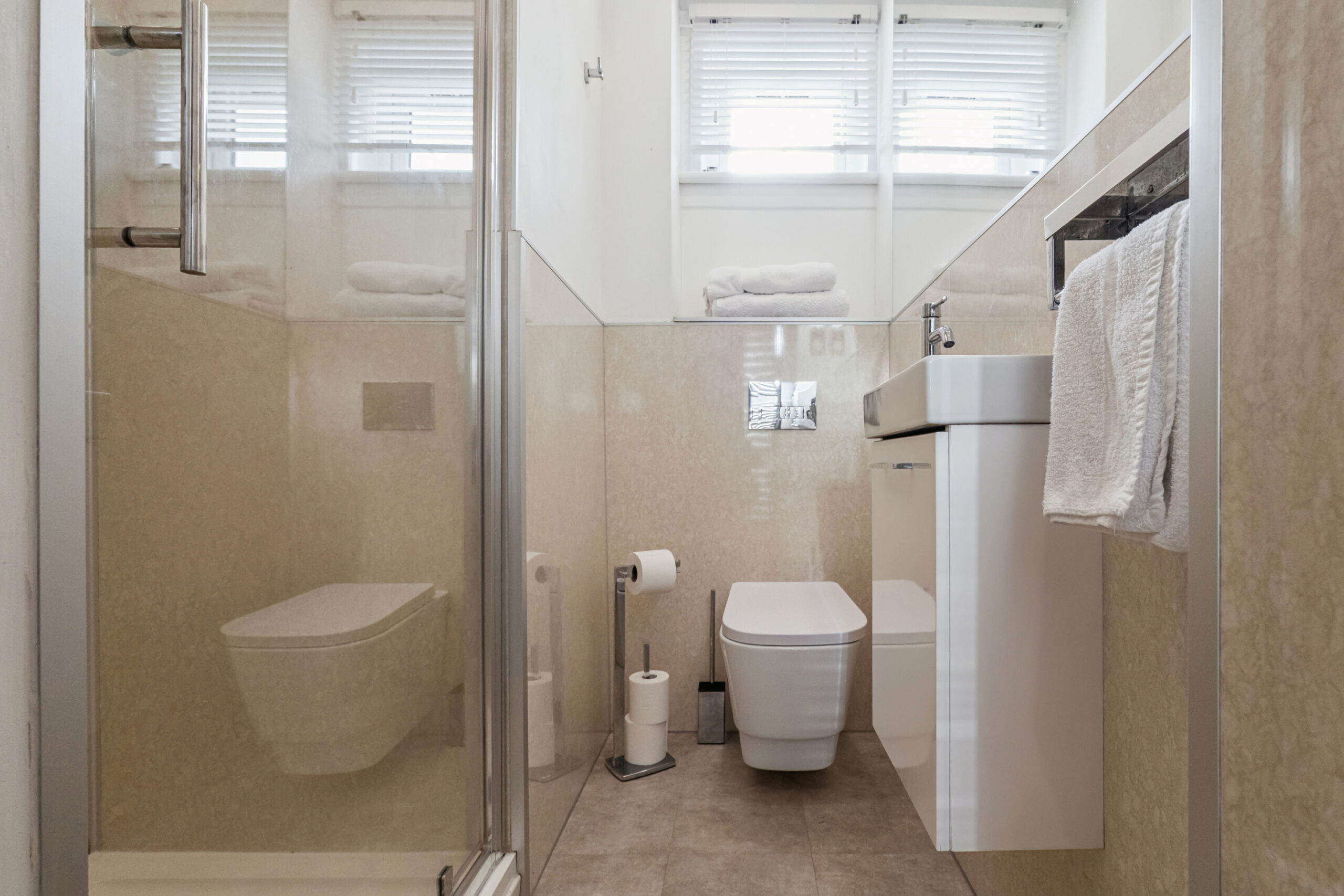 The main shower room is lovely and comprises large shower enclosure, wash hand basin and a w.c. Window to the side.